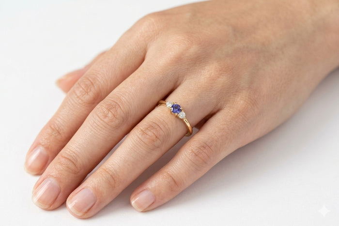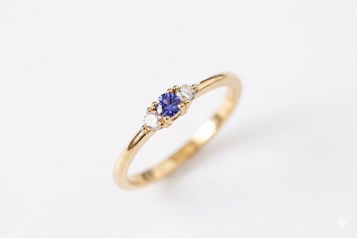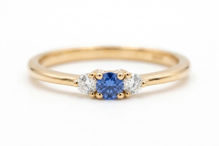 Blue Sapphire Ring in Gold with Diamonds