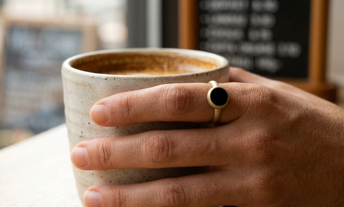 With its distinctive ridged design, this gold ring catches the light with every move — a statement piece balancing strength and harmony.
